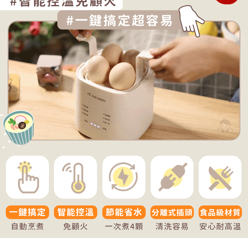 25分鐘前Pink Bunny智能煮蛋機智能控溫烹煮,營養美味輕鬆上桌 - Pink Bunny智能煮蛋機1入組 NT$1090